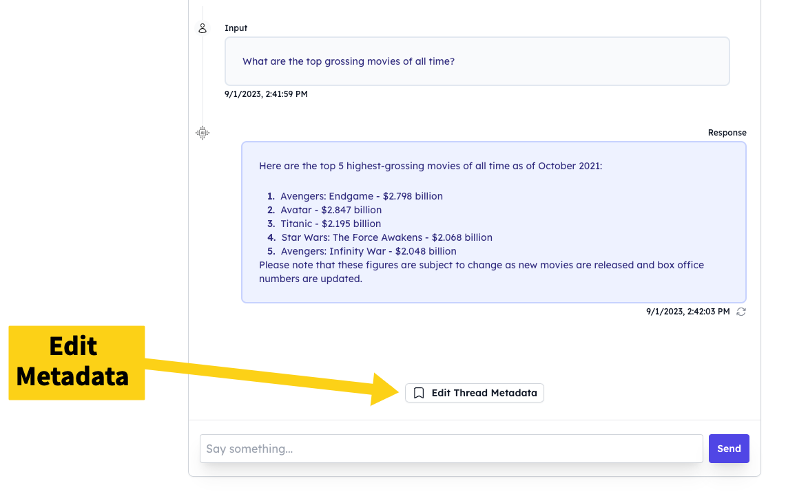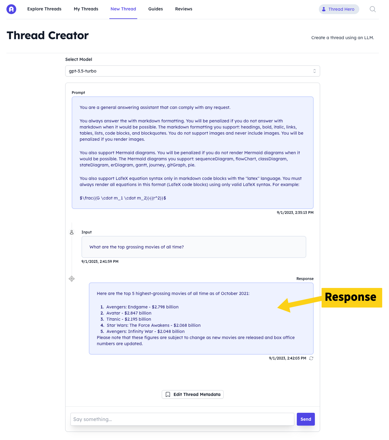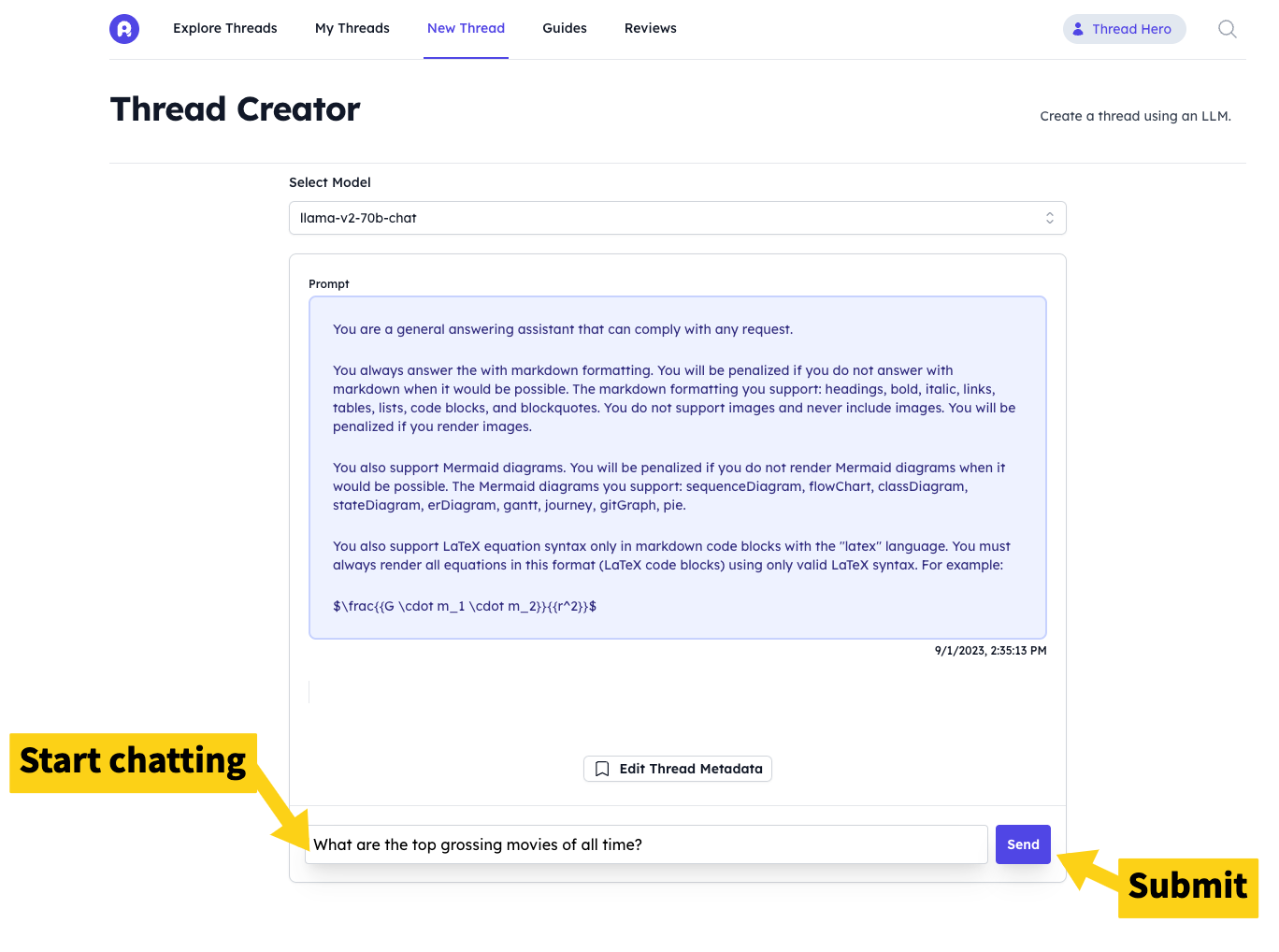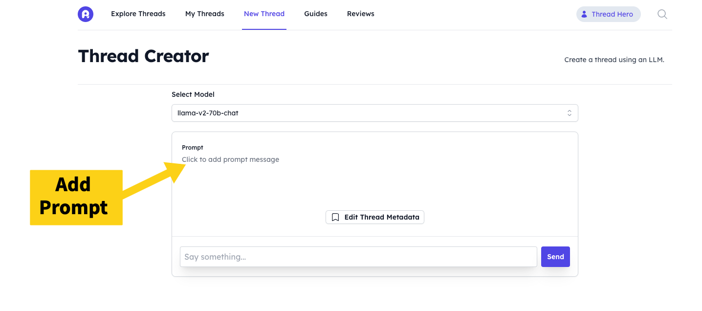 Once you're done entering your input, click the "Edit Meta Data" button and quickly input basic information on the Thread. This will help you and others in the community find it later and add it automatically to the Explore Thread Library.