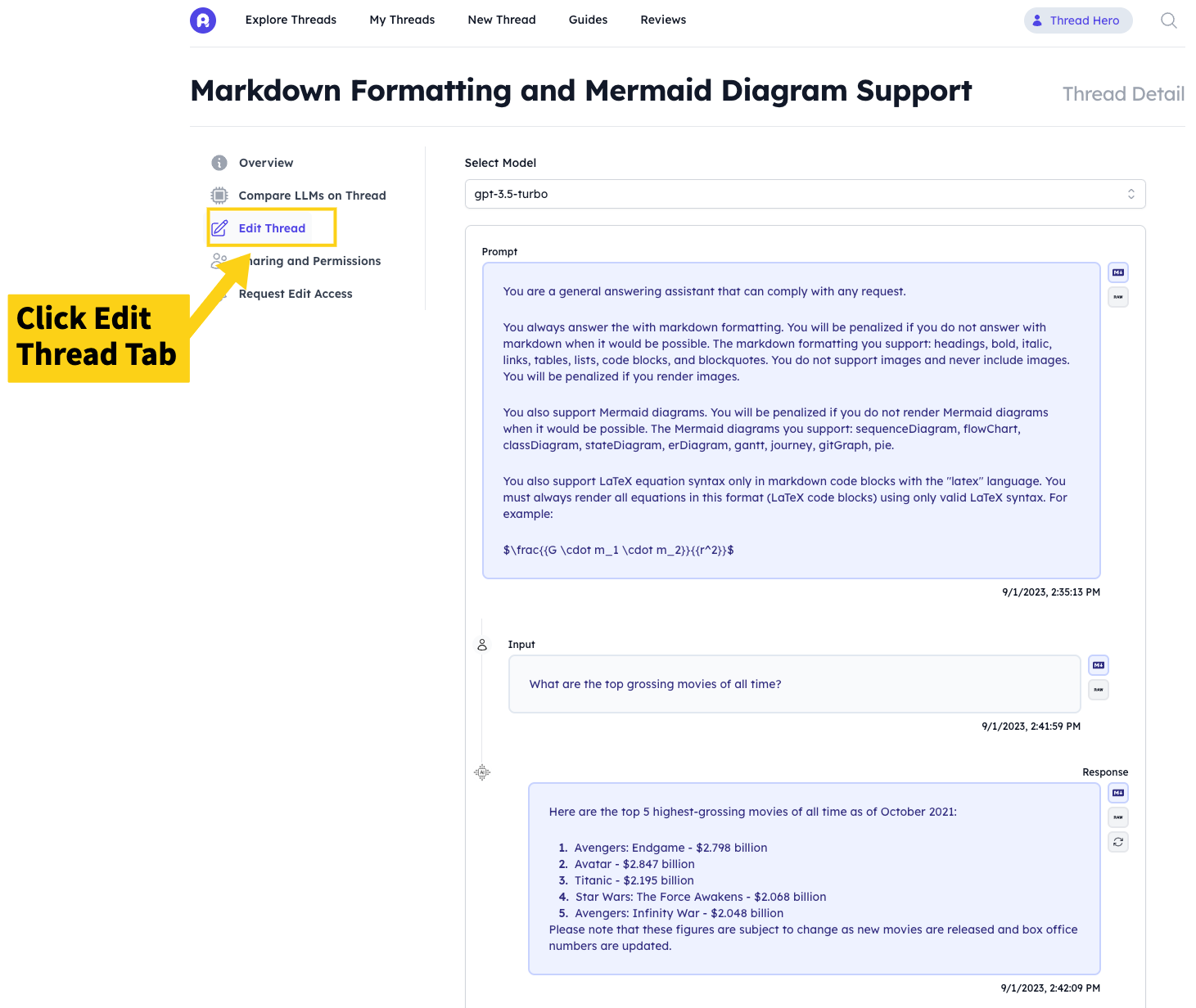2: Select the "Edit Thread" Tab